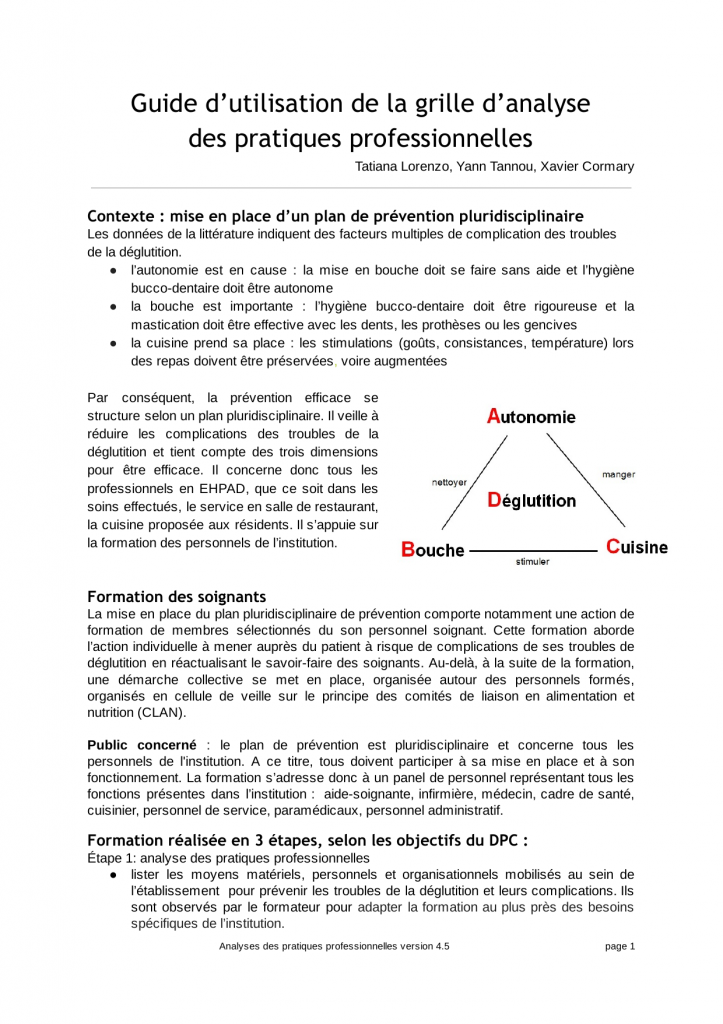 Outil permettant d’évaluer les pratiques professionnelles d’une structure autour de la question de la prévention des troubles de la déglutition et de leurs complications.