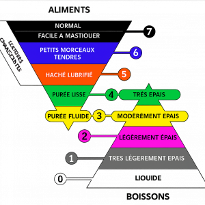 Il n’existe donc pas de « texture anti fausse route », mais une texture raisonnée et raisonnable est nécessaire pour ne pas les provoquer : la texture IDDSI niveau 6, qui sont des petits morceaux faciles à mâcher (max 1,5 cm), glissants et cohésifs, pouvant être proposée aux personnes ayant une mastication possible mais réduite.